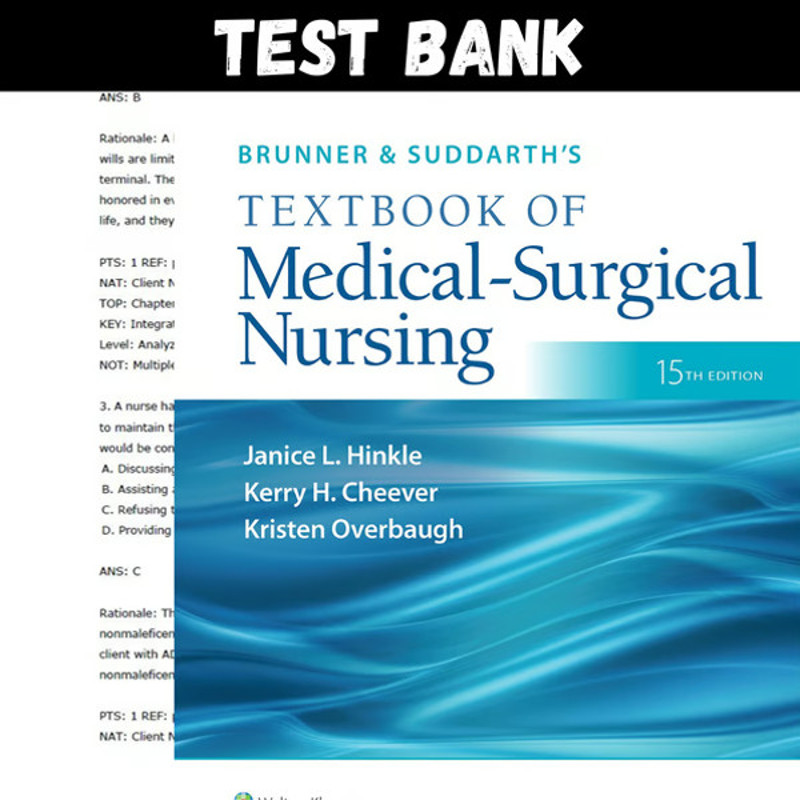 Brunner & Suddarth's Textbook of Medical Surgical Nursing 15th Edition Hinkle Test Bank, All Chapters Included