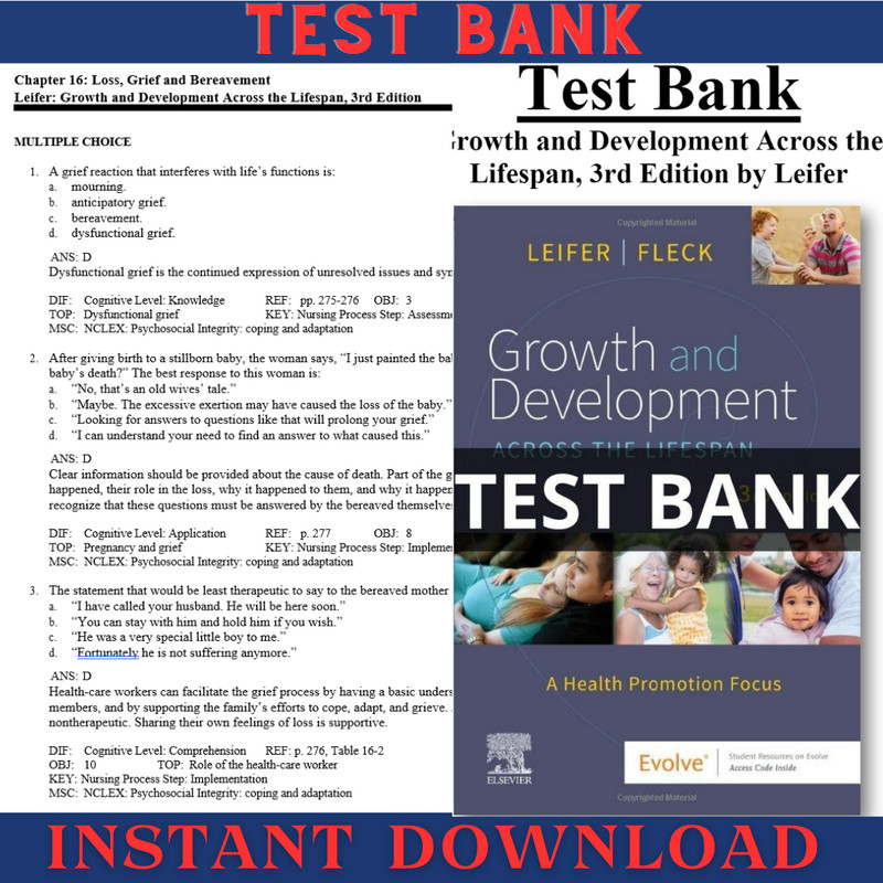 Growth and Development Across the Lifespan 3rd Edition Leifer Test Bank Chapter 1 - 16 Updated 2023